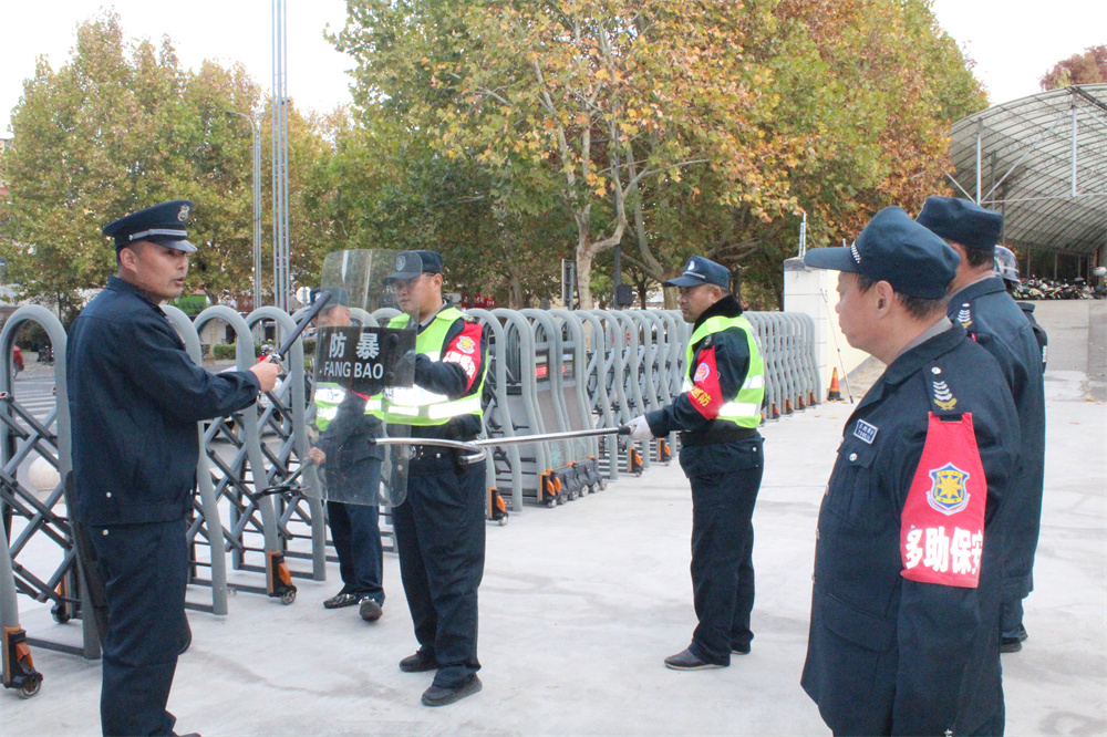 演练前,专业人员针对校园安保器械的使用、防暴队形及防控动作进行讲解,随后,防暴演练拉开帷幕。模拟场景为一名“歹徒”在学校门口假以伤人为名,突然拨刀强行闯入校园,对保安人员进行追打。安保人员立即启动校园反恐防暴应急预案,迅速作出反应,紧急拨打报警电话,迅速持防暴盾牌、钢叉、长警棍与“歹徒”进行牵制。演练过程中,保安人员严格按照预案要求,迅速、有效地完成了各项任务,成功将“歹徒”制服,确保了校园安全。