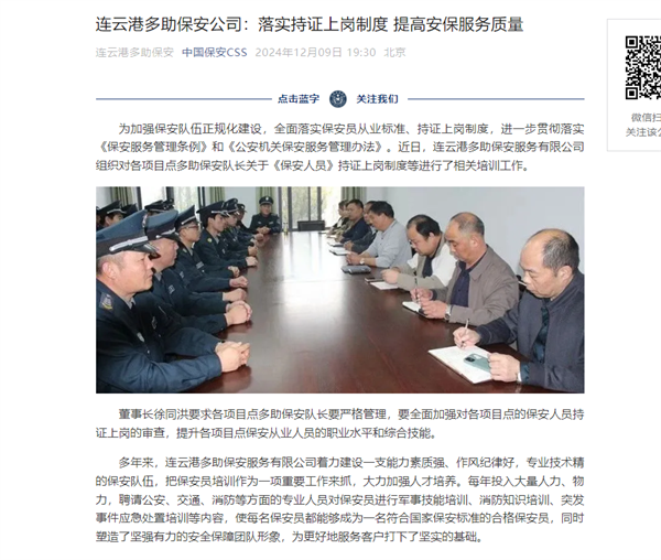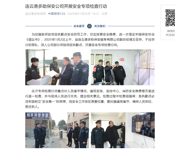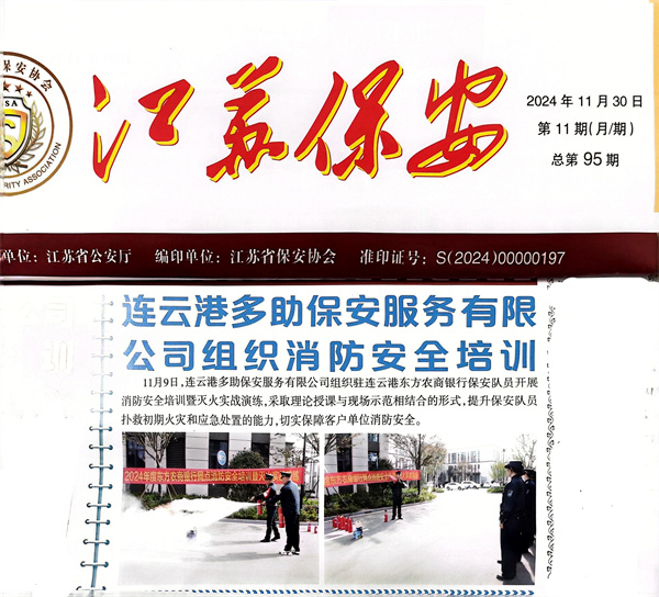 多助保安多次获中保官微、江保官微、江苏保安报集中报道和认可