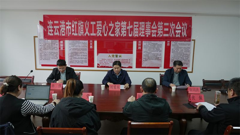2025年3月29日下午15:30时,连云港市红旗义工爱心之家第七届理事会第三次会议在连云港多助保安服务有限公司召开,会议分析总结了一年来的工作,就2025年重点工作进行了谋划,共商市红旗义工爱心之家发展大计。中国好人、市红旗义工理事长刘爱东以及爱心人士、连云港多助保安公司董事长徐同洪等出席会议。会议由副理事长孙伟主持。