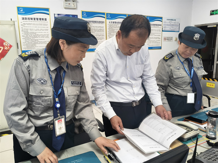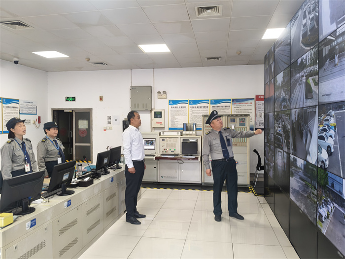 公司副总经理姚军一行人重点对执勤纪律检查、重点关注岗亭、监控室岗位的规范着装、消防设备、器械佩戴及工作状态、核查带班领导在岗情况及突发事件响应预案等进行专项检查。