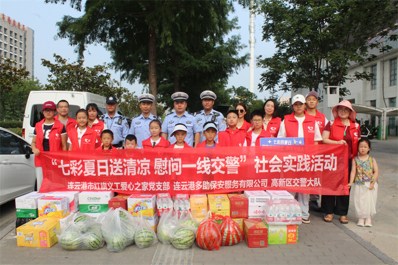 入夏以来,连云港持续高温,地表温度屡破40℃。一线交警始终坚守在城市主干道、交通枢纽等户外岗位,面临严峻“烤”验。2025年7月13日,为致敬其辛勤付出,连云港多助保安服务有限公司积极响应防暑关爱倡议,联合连云港市红旗义工爱心之家党支部共同组织走进连云港市高新区交警大队开展“夏日送清凉”专项慰问活动,旨在通过物资支持与精神关怀,为交警队伍注入清凉动力,同时深化警企协作纽带。