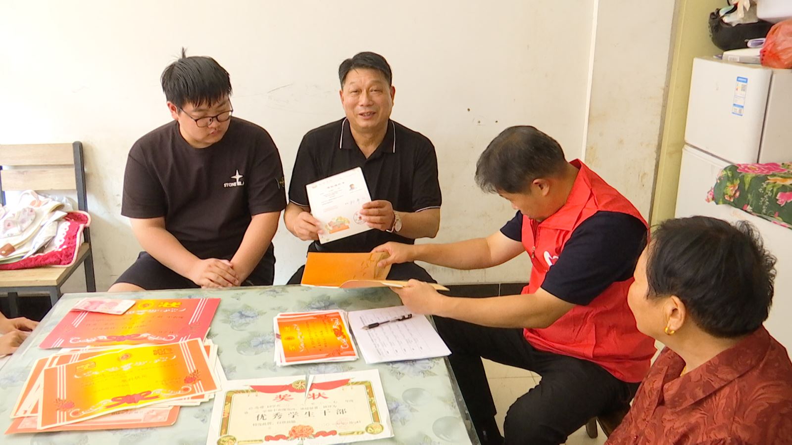 活动中,多助保安公司董事长、市红旗义工爱心之家副理事长徐同洪作为爱心人士代表与中国好人、市红旗义工爱心之家理事长刘爱东等志愿者代表一起为孙雨婷(已连续资助帮扶九年),赵若涵(已连续资助帮扶十年),杨梦(已连续资助帮扶十一年),孙萌萌(已连续资助帮扶十一年),孙振祥(已连续资助帮扶十一年)等五名优秀的贫困学生发放一万余元的助学金。这不仅仅是一份物质上的支持,更是一份沉甸甸的精神鼓励,为学子们即将展开的校园生活注入了信心和动力。
