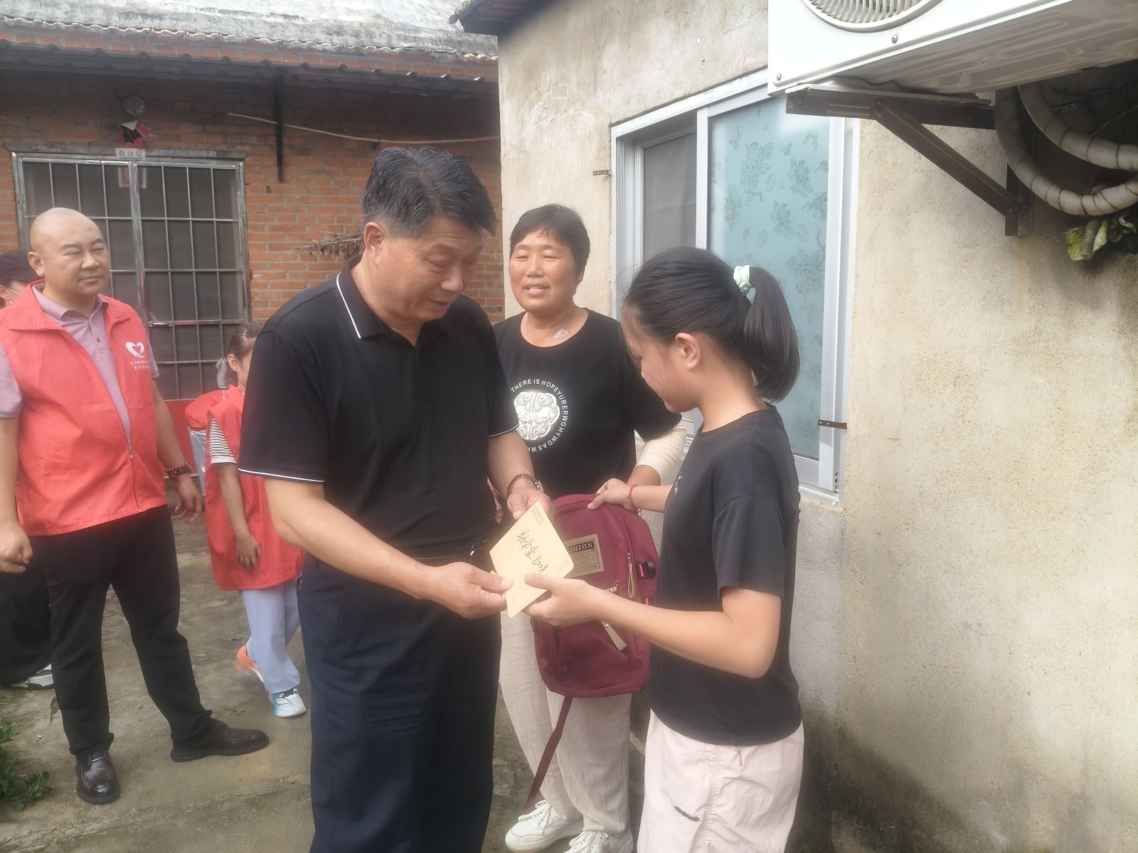 9月13日下午15:00,连云港多助保安服务有限公司携手连云港市红旗义工爱心之家,组织爱心人士与志愿者走进赣榆区城头镇谢坡村、大河东村、苏青墩村、后河东村,开展了一次意义非凡的2025年“乡村爱心车 为梦想续航”助学活动。活动现场,多助保安公司董事长、市红旗义工爱心之家副理事长徐同洪,与中国好人、市红旗义工爱心之家理事长刘爱东等志愿者代表一起,为6名优秀的贫困学生发放了12000元的助学金。这些学生中,有的已被连续资助帮扶长达8年之久,这份长期的支持,不仅解决了他们物质上的困难,更给予了他们精神上的鼓励,让他们在追求知识的道路上充满信心与动力。