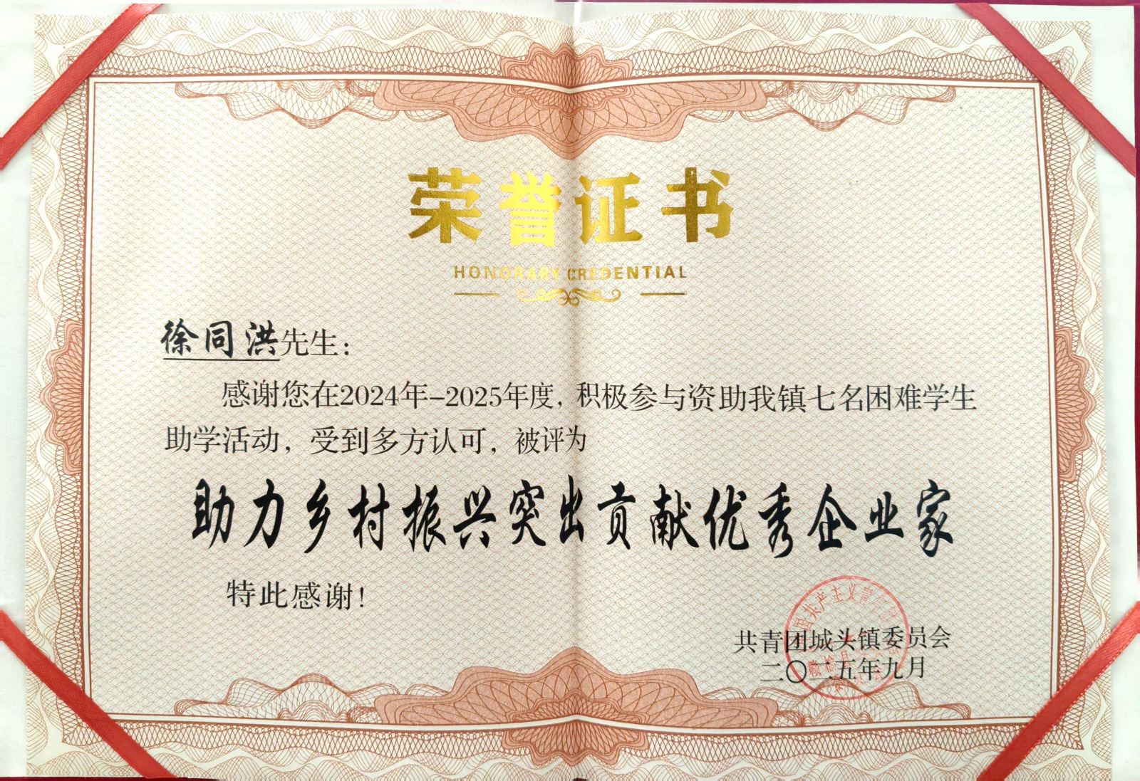 近日,连云港多助保安服务有限公司因其长期坚持的助学品牌活动,获得了政府的高度认可与表彰。董事长徐同洪被评为“助力乡村振兴突出贡献优秀企业家”,公司被评为“助力乡村振兴突出贡献优秀企业单位”。这一荣誉不仅是对多助保安公司爱心奉献的肯定,更是对其社会责任担当的褒奖,在当地引起了广泛关注。